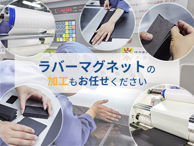 ラバーマグネット(ゴム磁石)標準品以外に、お客様のご要望に応じて、個別の注文生産を承っております。サイズカット、型抜き、両面テープ貼り、印刷など、さまざまなご要望にお応えできます。